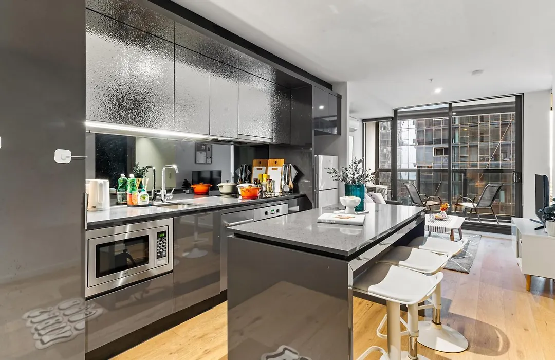 L'appartamento Unbeatable Convenience Southerncross Cbd Gateway offre un balcone, un soggiorno e una cucina, oltre a comfort come un impianto di climatizzazione.